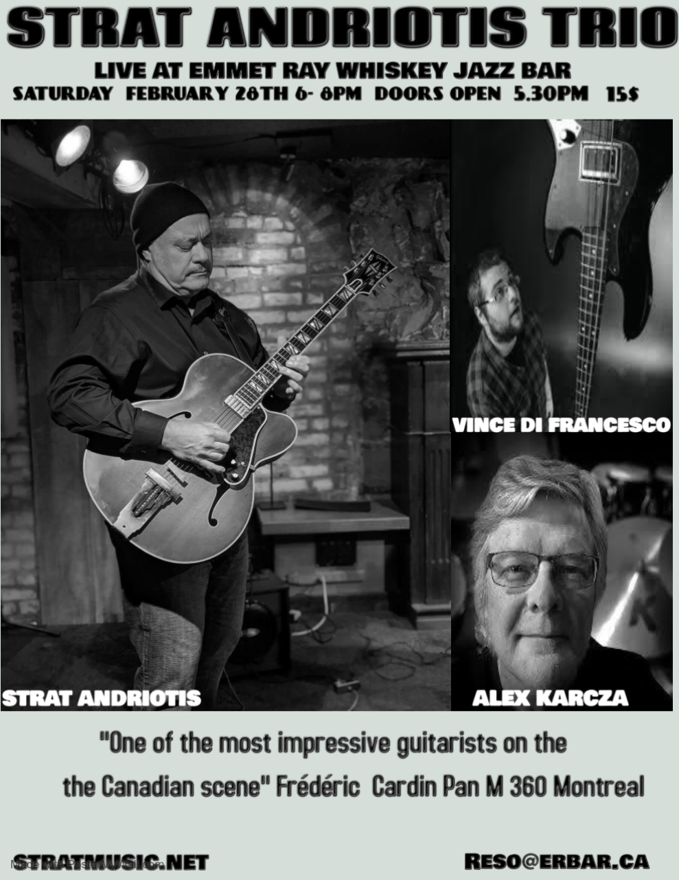 Strat Andriotis Trio playing new original compositions. Modern Jazz/Post Bop