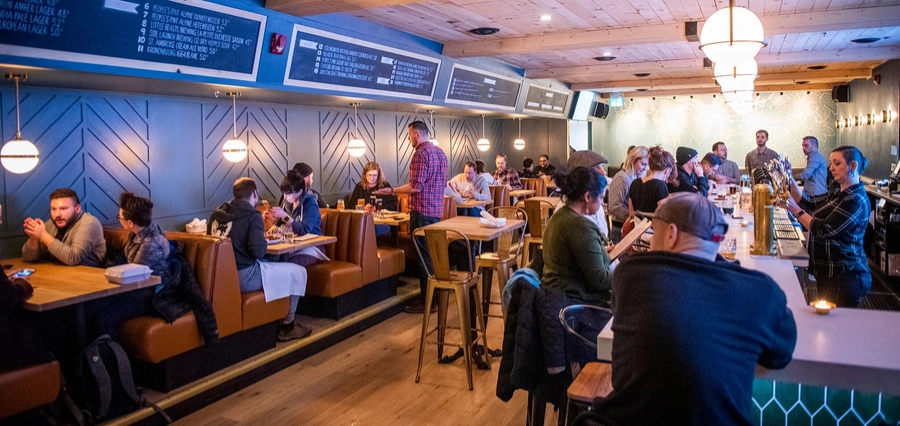 The Alpine in Toronto’s Junction neighborhood is a cozy, European-style beer cabin serving elevated comfort food like schnitzel, sausages, and beer-brined chicken, paired with 26+ taps of craft beer and cocktails. Opened in 2019, it features a warm, woody atmosphere with a lower-level venue for events.